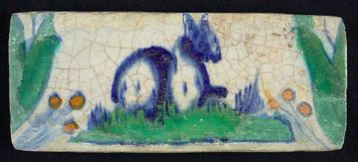 Dierentegel, paars gesprenkelde tegel, in blauwe ach...