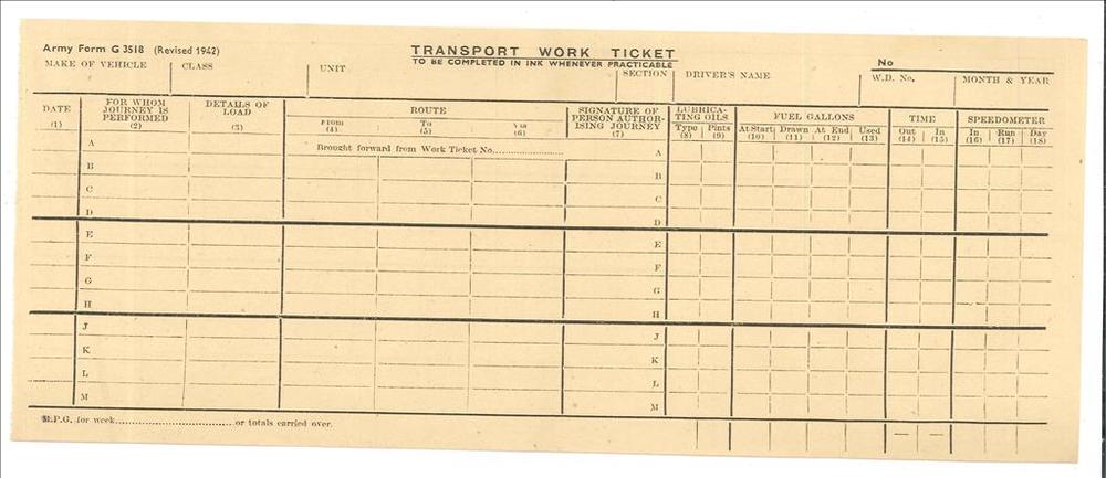 Transport work ticket, leeg
