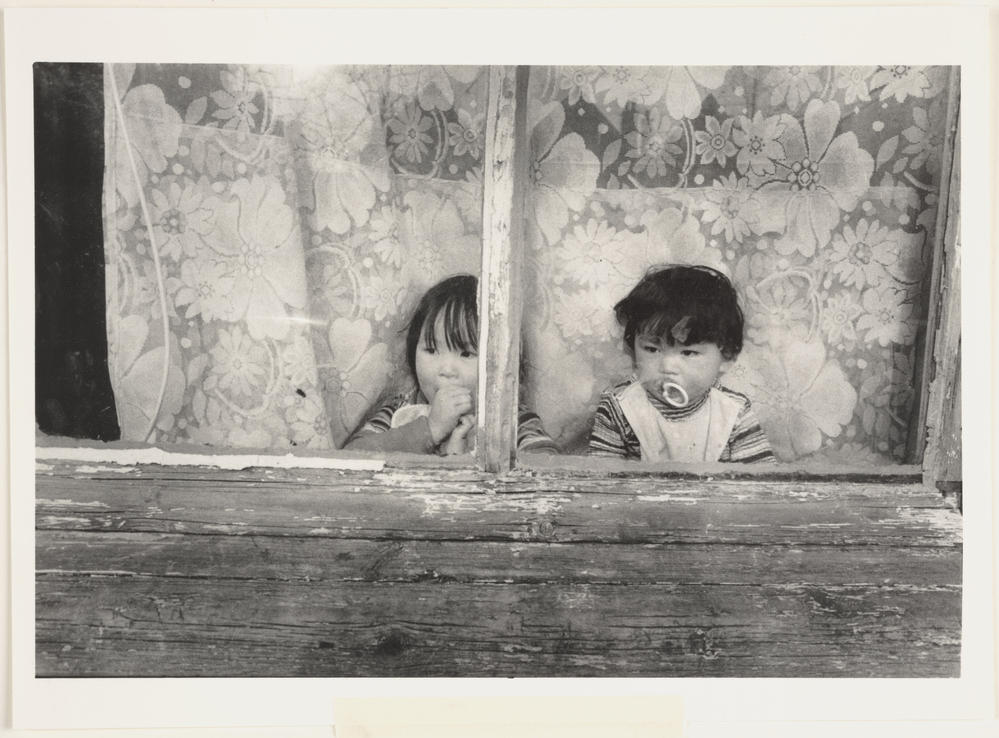 Twee kinderen achter een raam in de Ravesteinstraat ...
