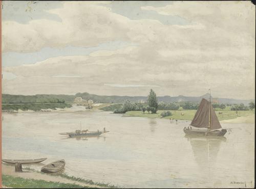 Riviergezicht aan den IJsel bij het Rhedensche veer ...