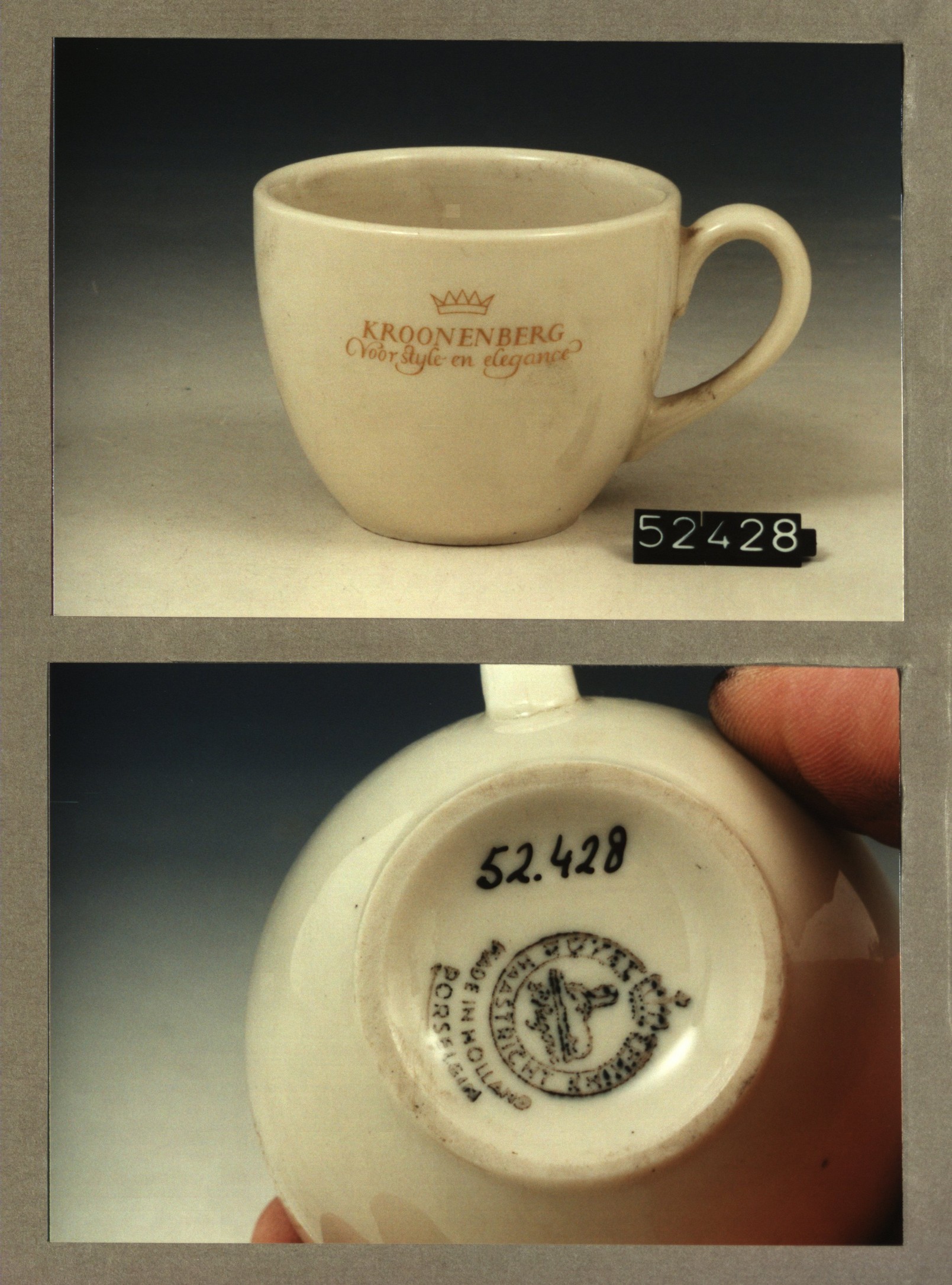 Kop met opschrift, model N met decor Kroonenberg voo...