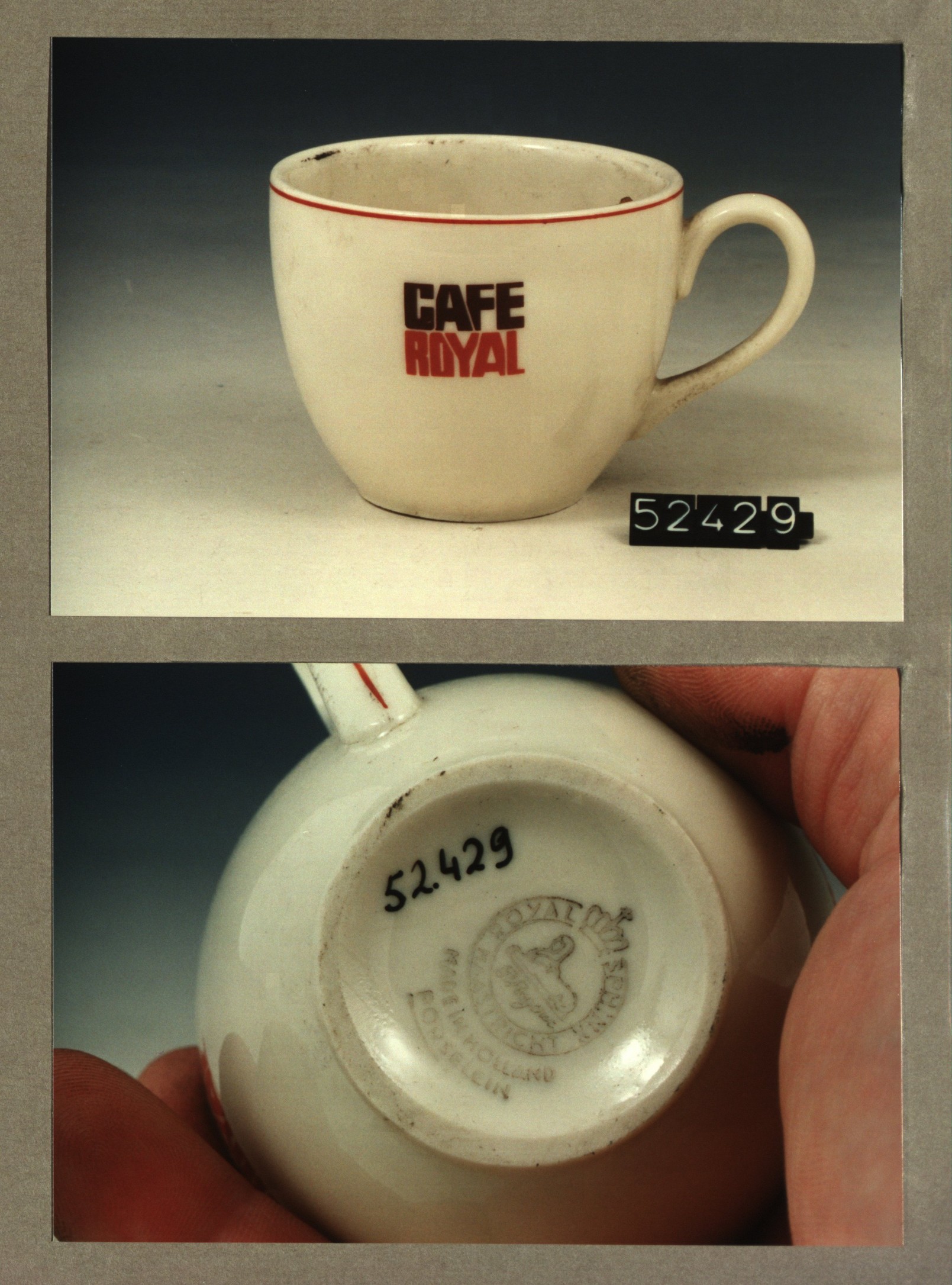 Kop met opschrift, model N met decor Cafe royal