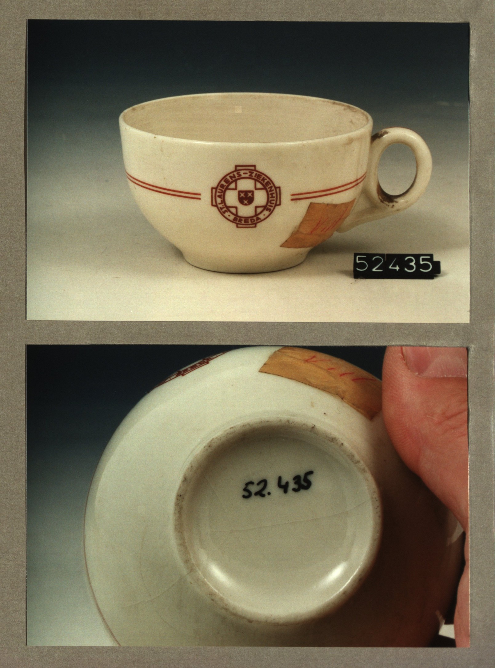 Kop met opschrift, model F met decor St.Laurens ziek...