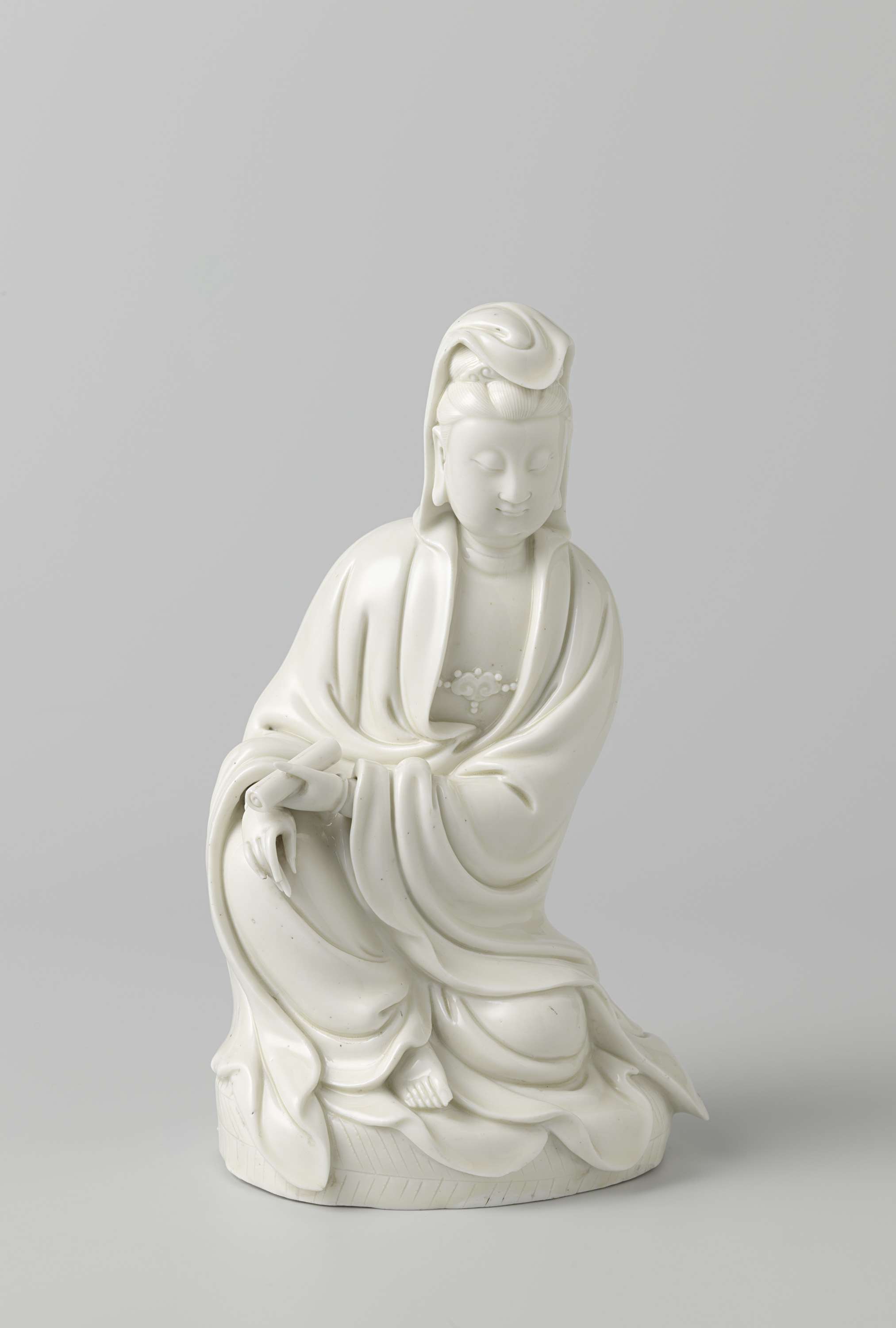 Figure of a seated Guanyin holding a scroll