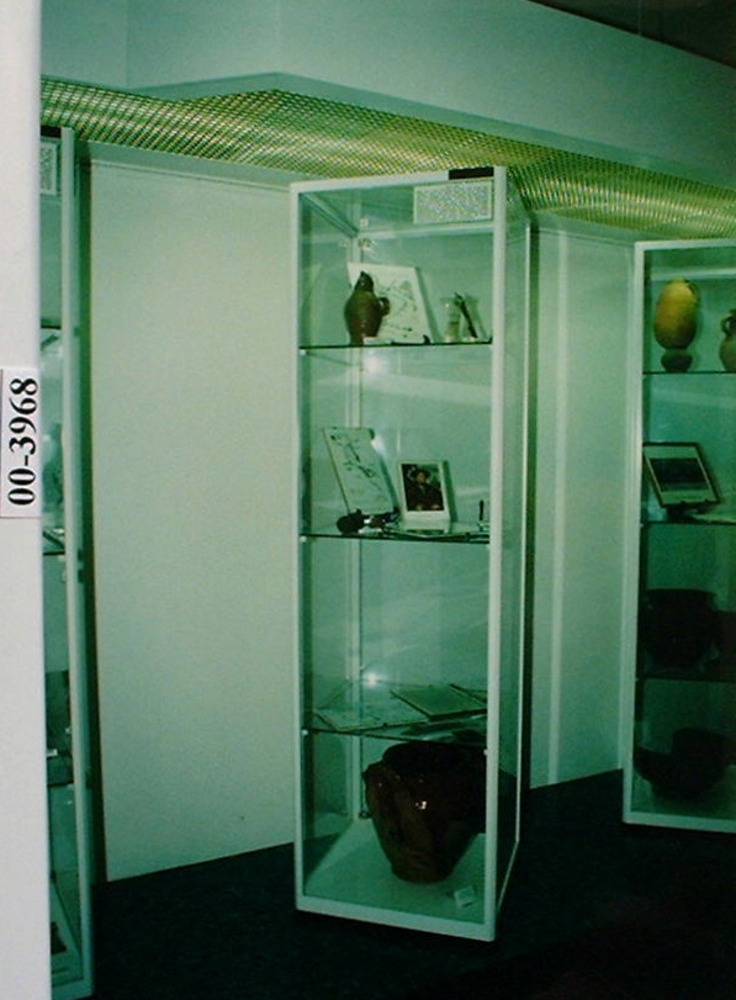 Twee foto's over de vitrinus in ons stadsmuseum te H...