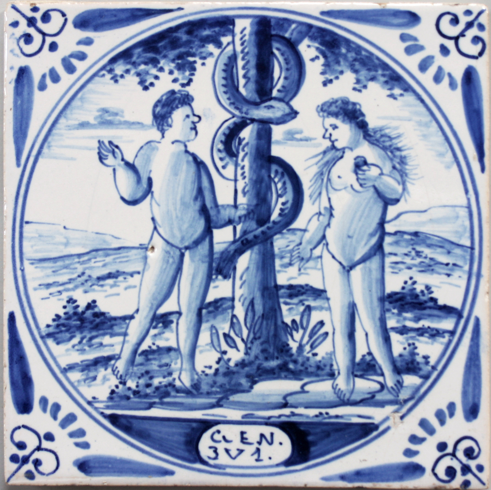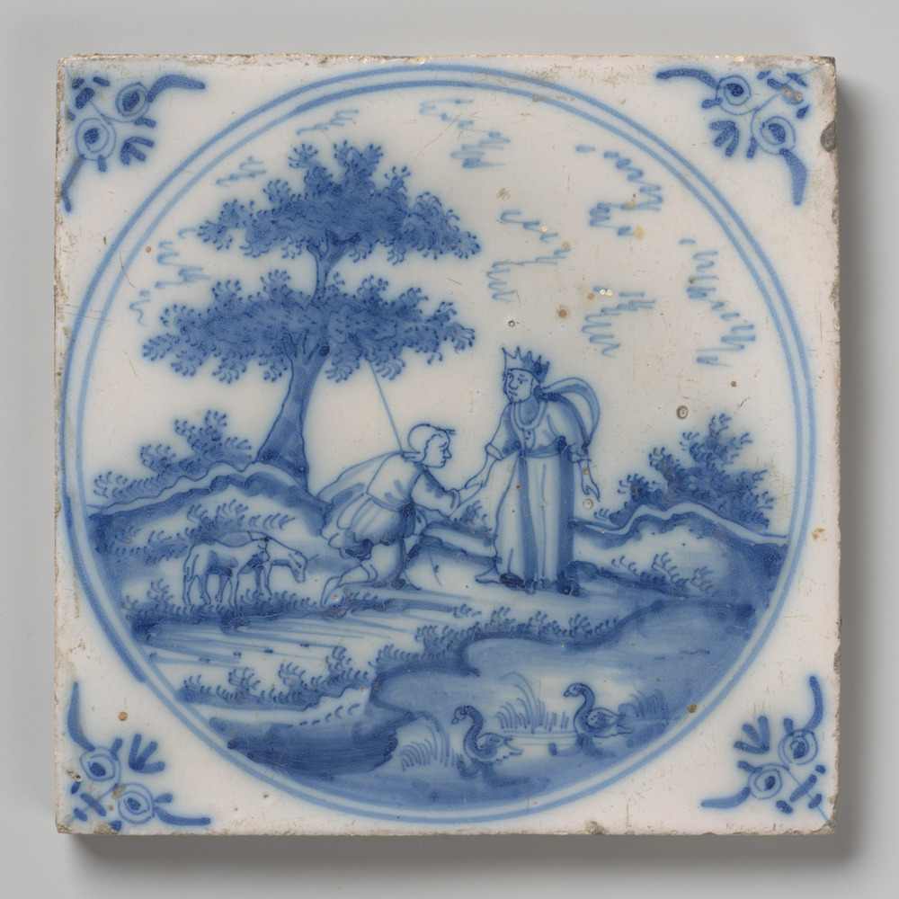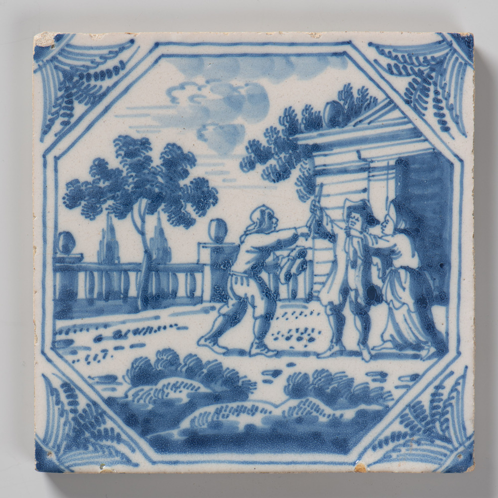 tegel van keramiek met tinglazuur, voorstellende: De...