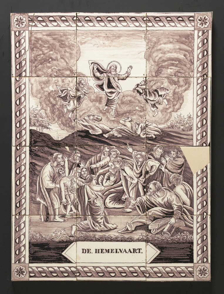 Tegeltableau van keramiek met tinglazuur, voorstelle...