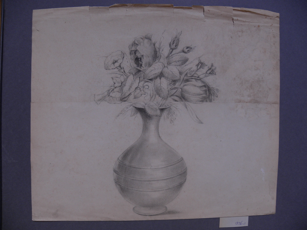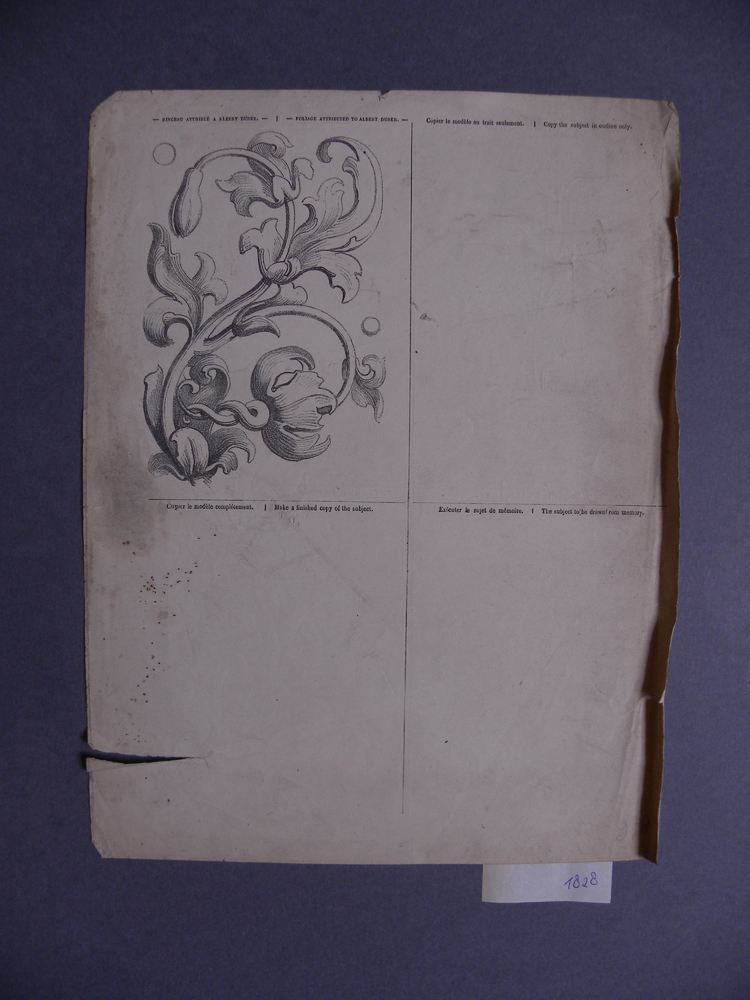Tekening op papier voorstellende rank met leeuwenkop...