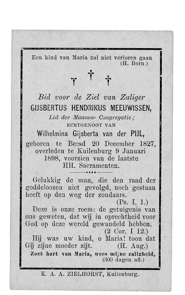 bidprent voor Gijsbertus Hendrikus Meeuwissen. Gebor...