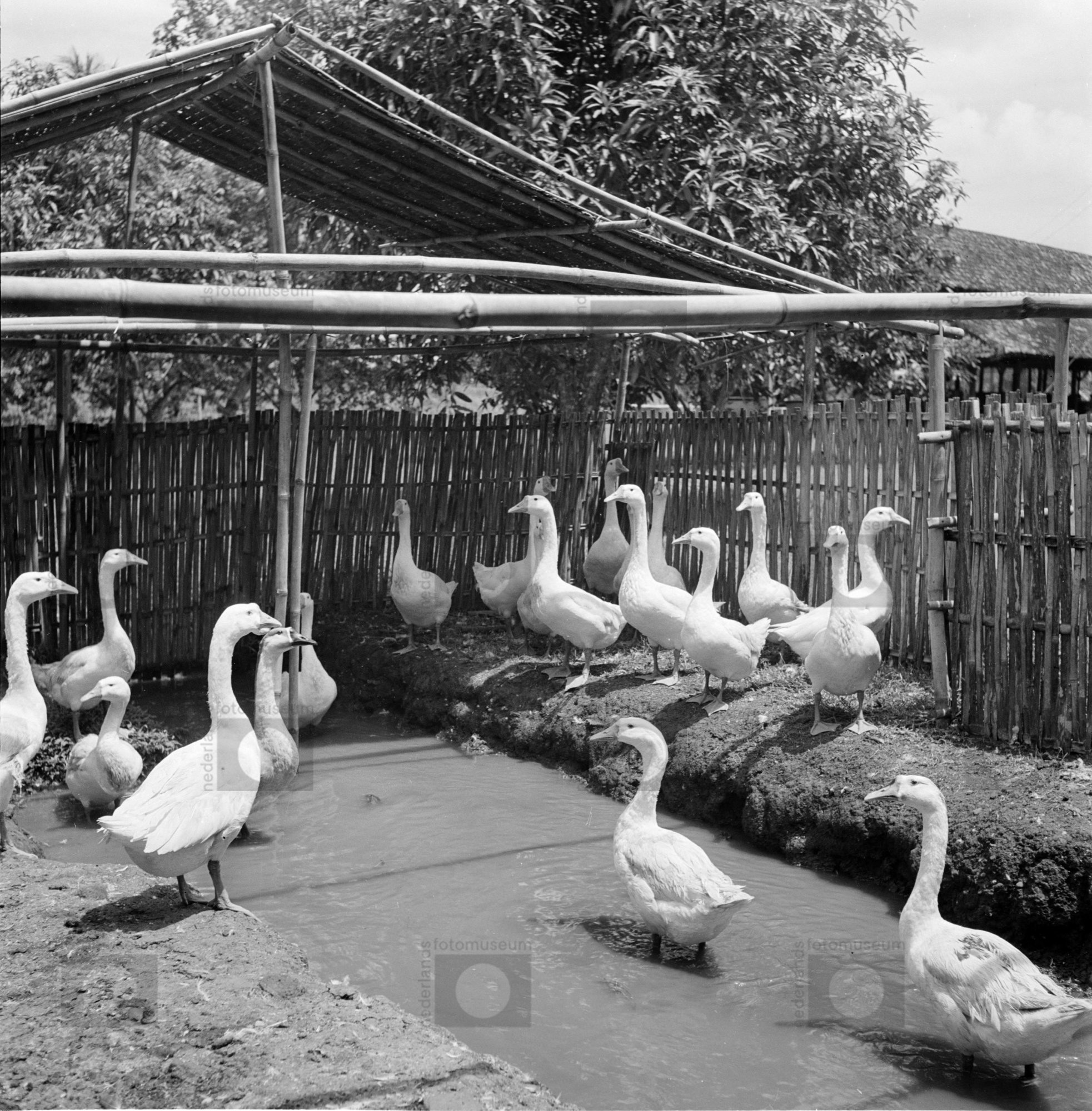 Ganzen in een halfopen stal van boerderij 'De Fr...