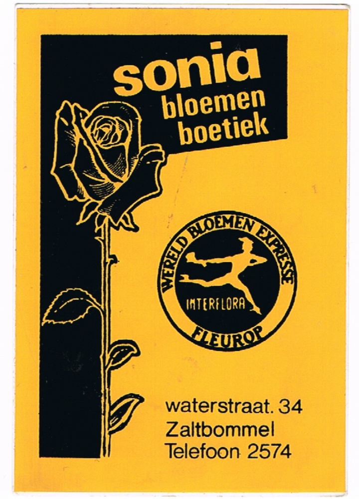 sticker Sonia bloemenboetiek Zaltbommel 1970-1977