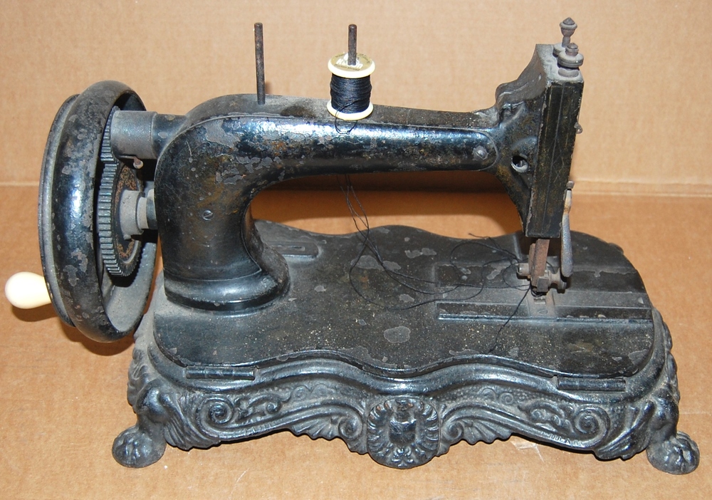 naaimachine met ovaal gegolfd gietijzeren onderblad....