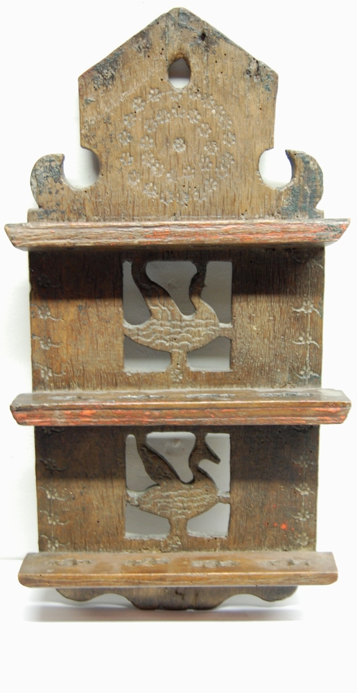 gebedsbord. Vier horizontale zwart geschilderde eike...