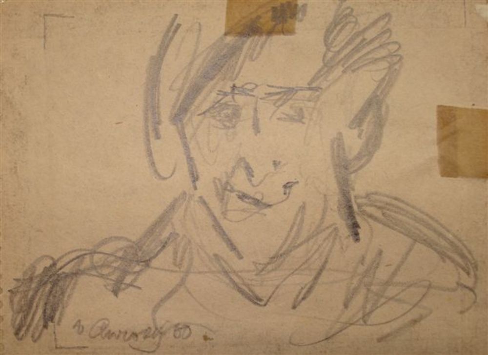 Potloodtekening, schets van een figuur, 1980, Jan va...