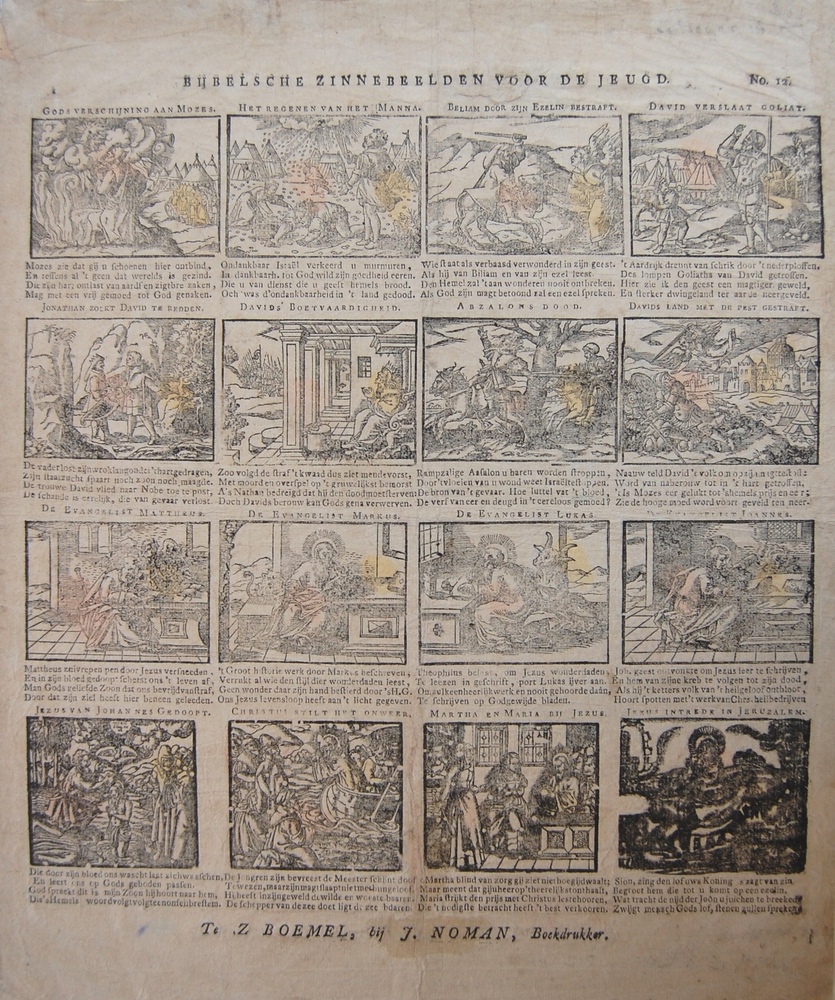 Centsprent met twaalf gekleurde prentjes met het ver...
