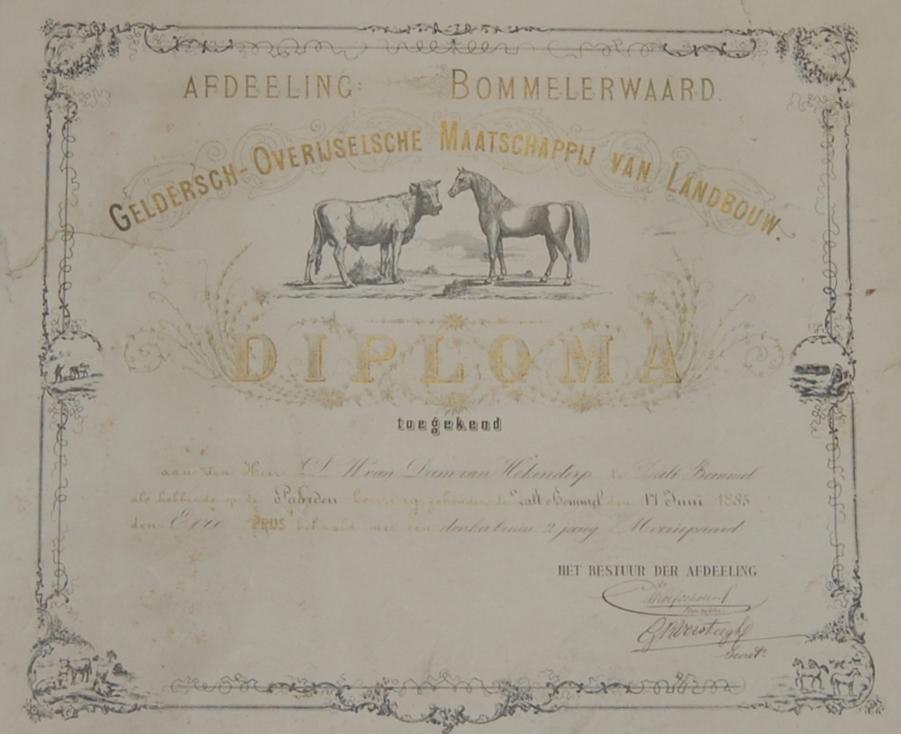 Diploma van Dam van Hekendorp, prijs veetentoonstell...