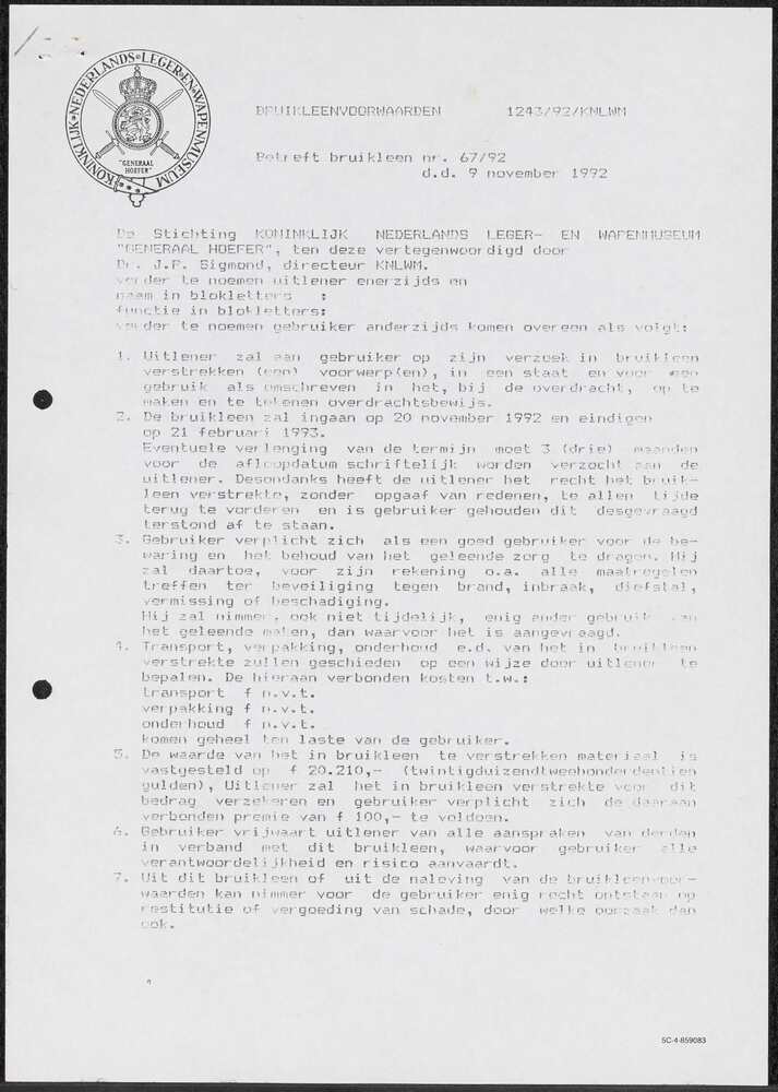 Brief van dhr. Tiemens, Arnhem 5 februari 1992.