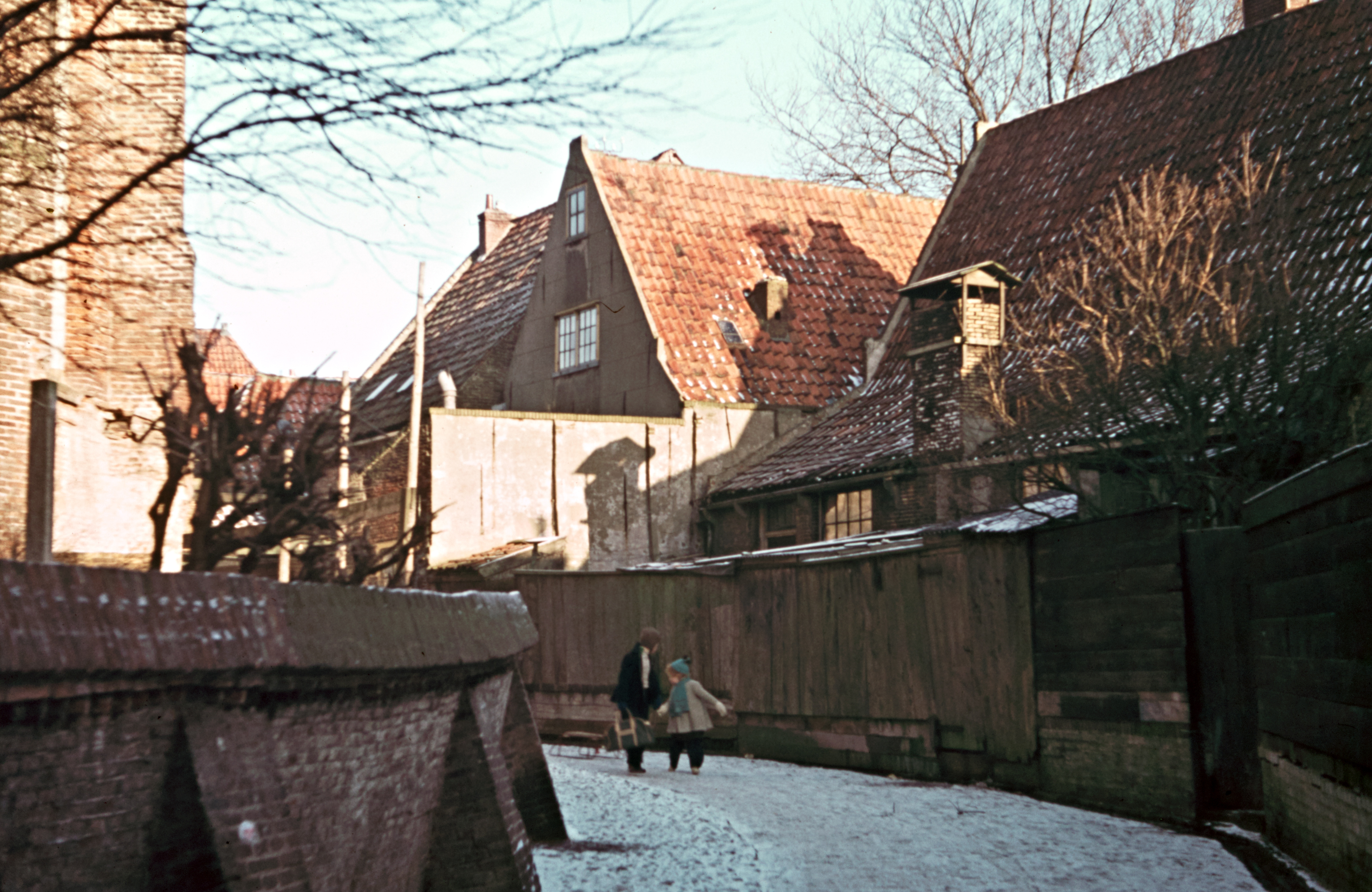 Zuiderkerksteeg achter Zuiderkerk in winter.