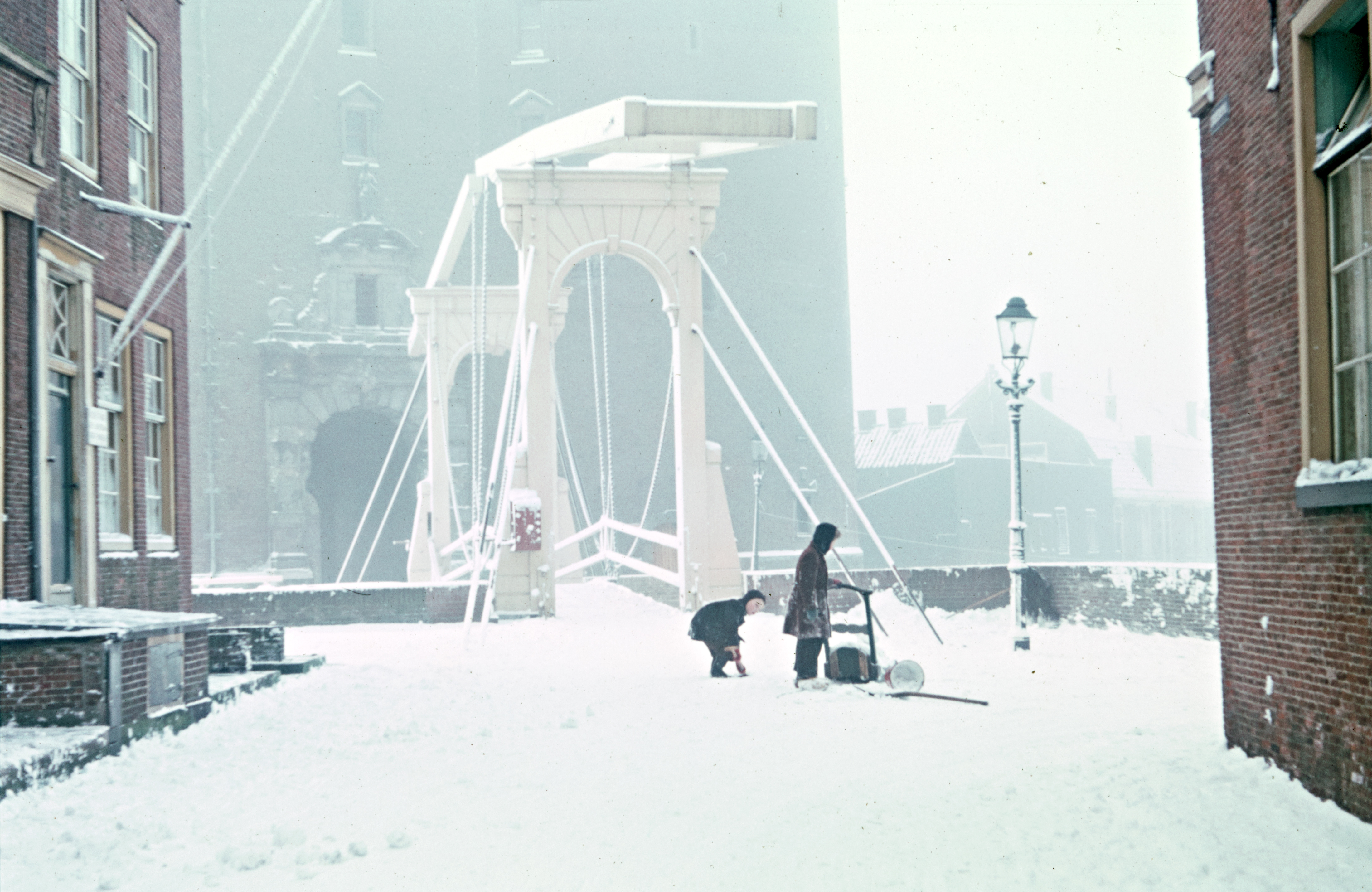 Wintergezicht van het Peperhuis en de Compagniebrug