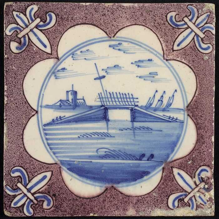 Tafereeltegel, zeilbootjes en gebouwen, hoekmotief f...