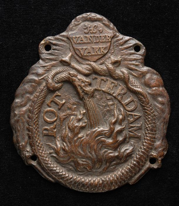Naamplaat voor brandspuit "H van der Vark" uit Rotte...
