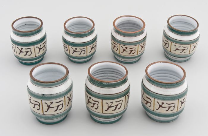 Zeven meerkleurige aardewerk vaasjes met de leeuwen ...