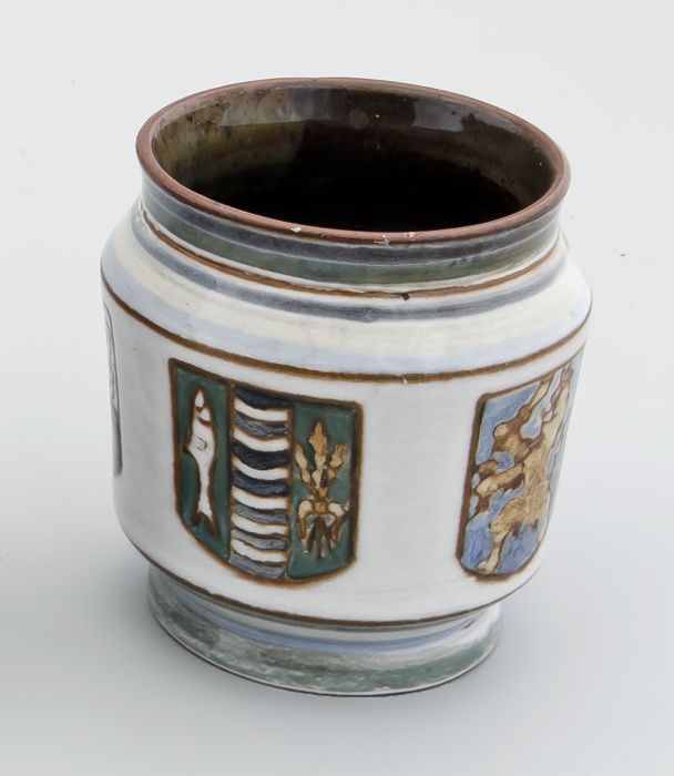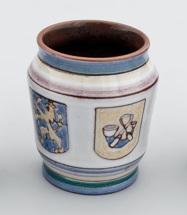Meerkleurig aardewerk vaasje met de leeuwen uit het ...