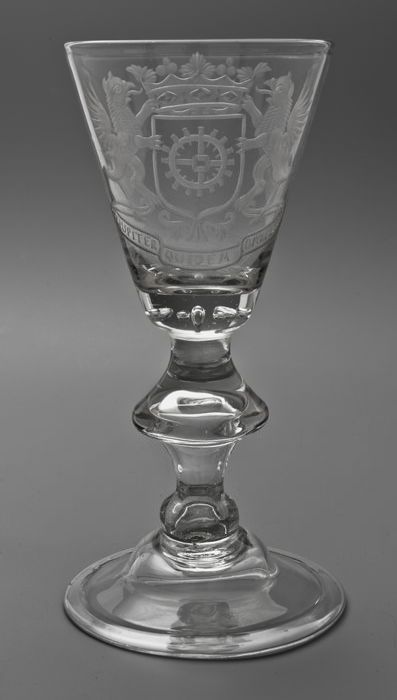 Kelkglas gegraveerd met familiewapen van Van Hogendorp