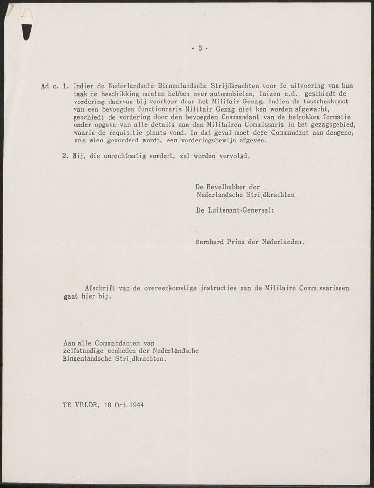 Bevelhebber Nederlandsche Strijdkrachten. Algemeene ...