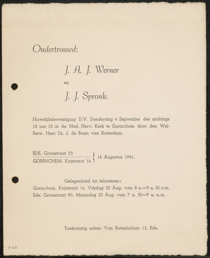 Ondertrouwkaart 14 augustus 1941