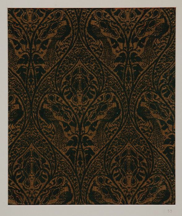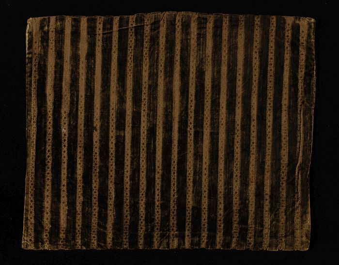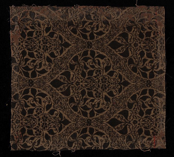Textielfragment van ingeweven jacquard in donkerbrui...