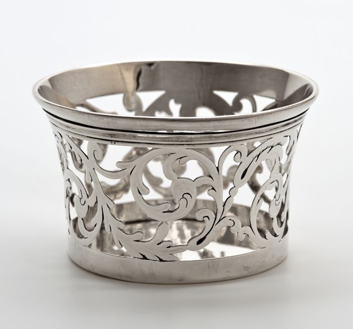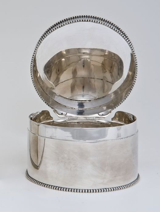 Ronde zilveren koektrommel, met parelranden