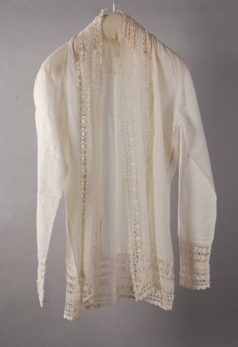 Witte kabaja, huisjasje met stroken kant