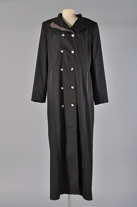 Zwarte wollen jas met satijnen revers, met dubbele o...