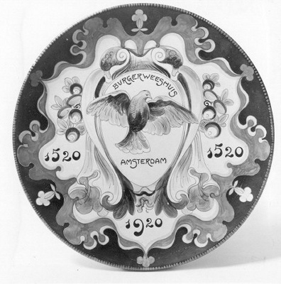 Bord "400-jarig bestaan Burgerweeshuis Amsterdam"