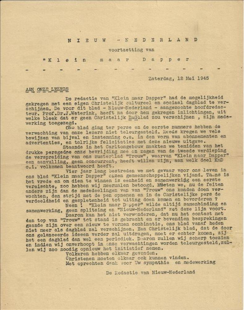 Nieuw Nederland, voortzetting van Klein maar Dapper,...