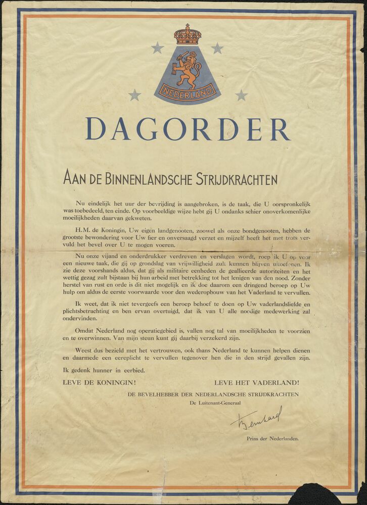 poster; Dagorder aan de BS van Prins Bernhard