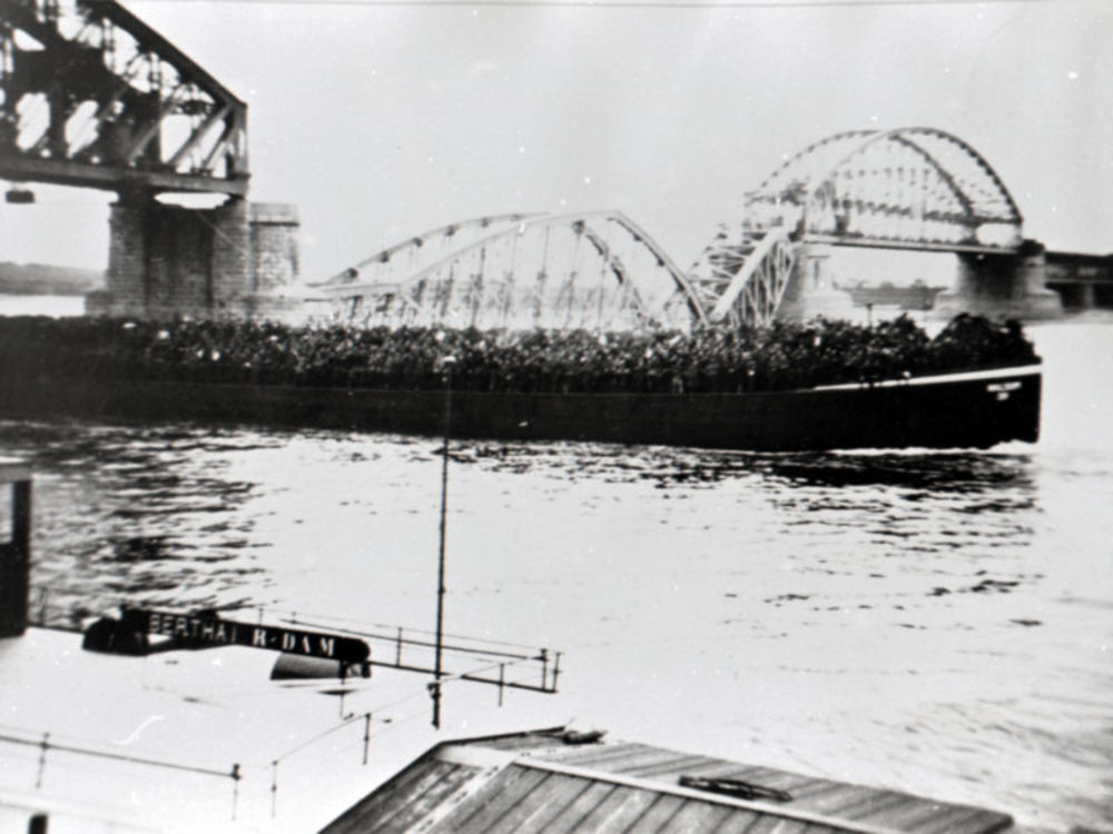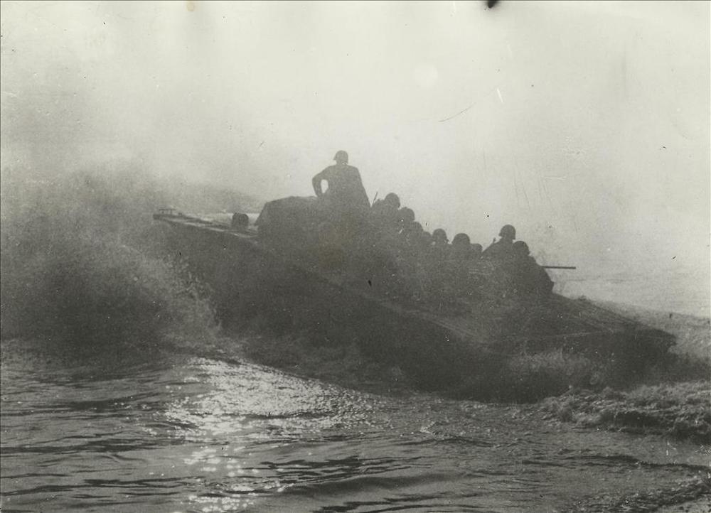 Oversteek Rijn; Amerikaanse amfibisch voertuig 'Alli...