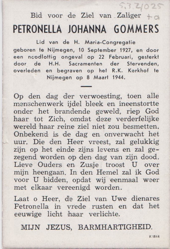 bidprentje (copie) Petronella Johanna Gommers