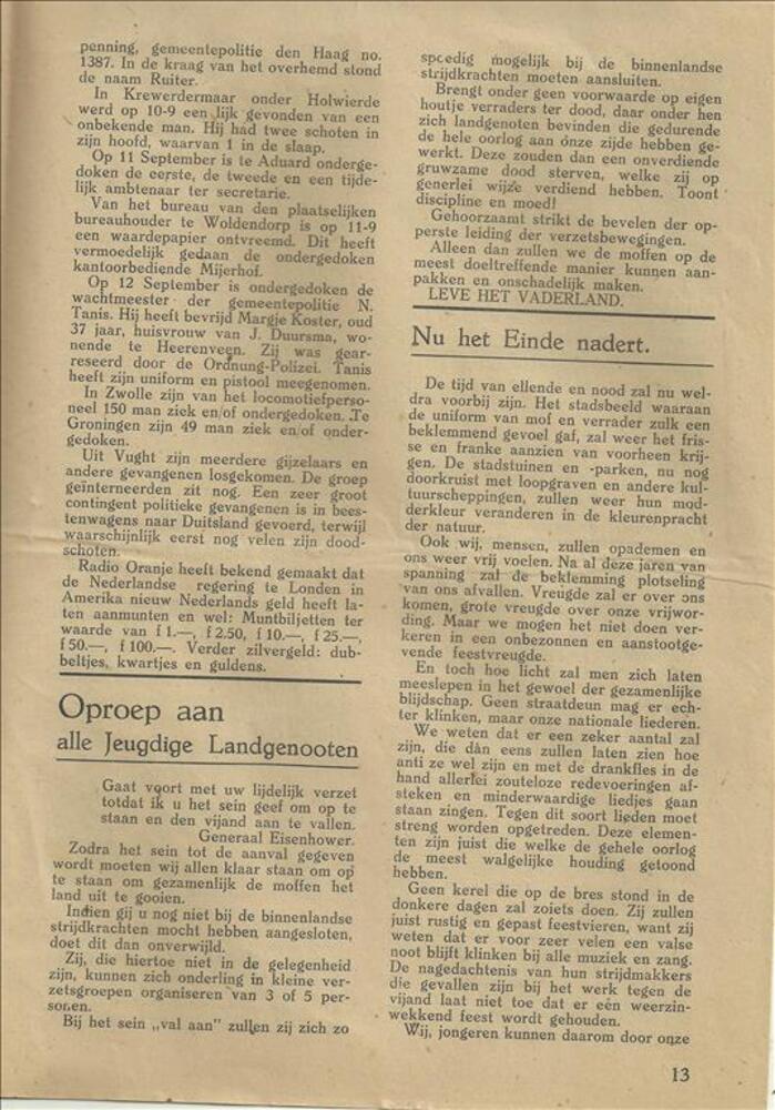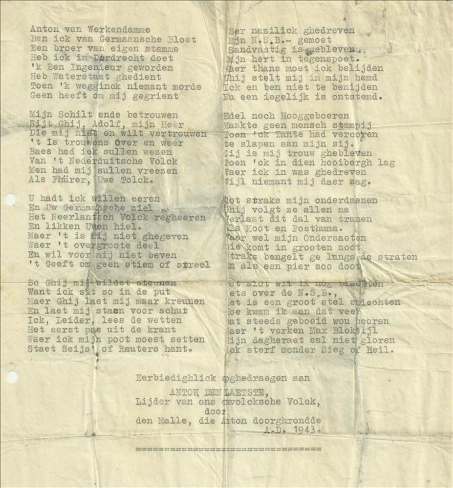 Gedicht uit het Algemeen Dagblad uit 1943 met de tit...