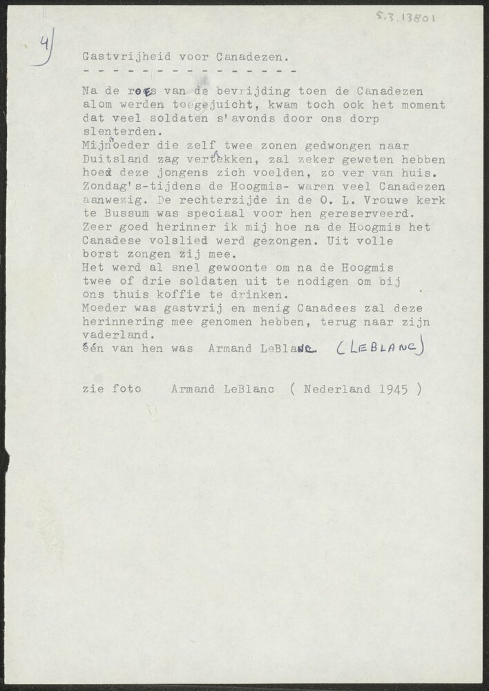 Tekst "Gastvrijheid voor Canadezen"