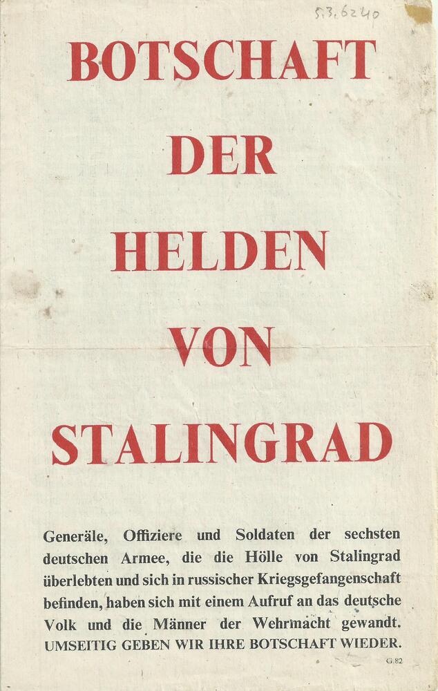 Pamflet:"Botschaft der Helden von Stalingrad" (G. 82...
