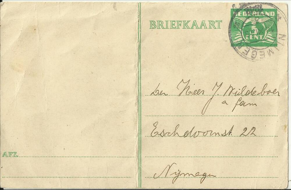 Aan dhr en familie Wildeboer te Nijmegen - betreffen...