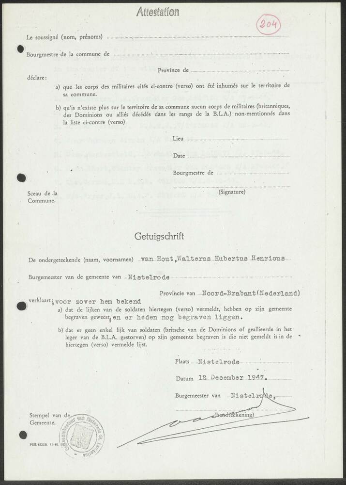 Getuigschrift van de burgemeester van de gemeente Ni...