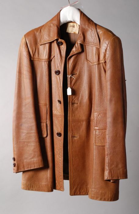 Herenjas van middenbruin leer met grote klepzakken, ...