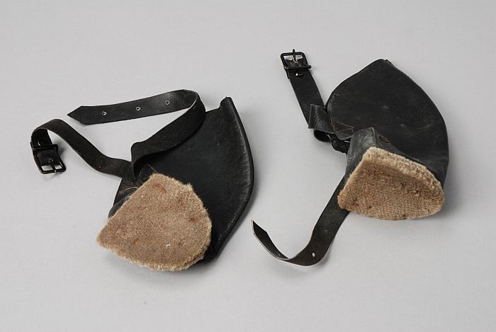 Paar hak-overtrekken van zwart leer met een dikke gr...