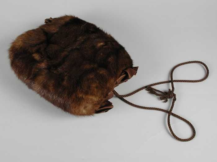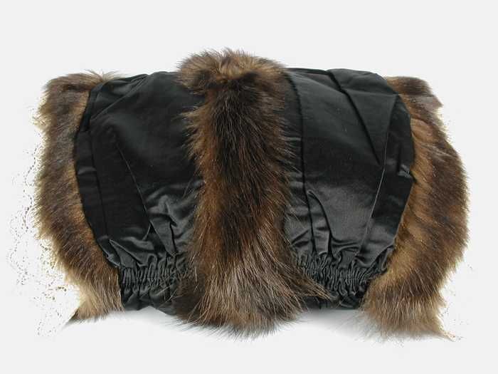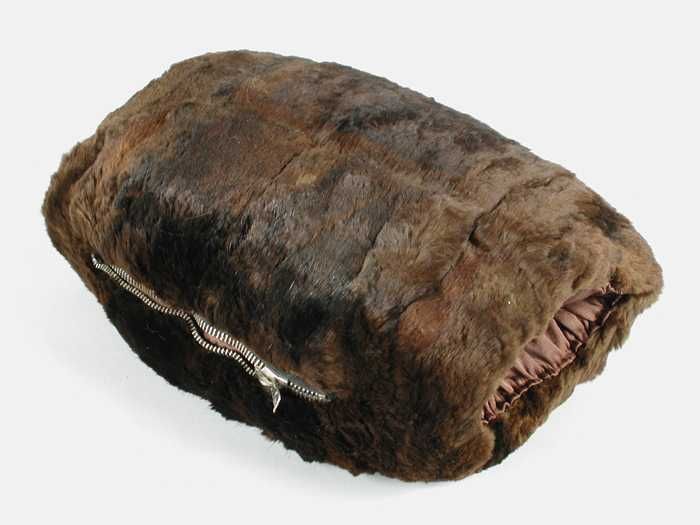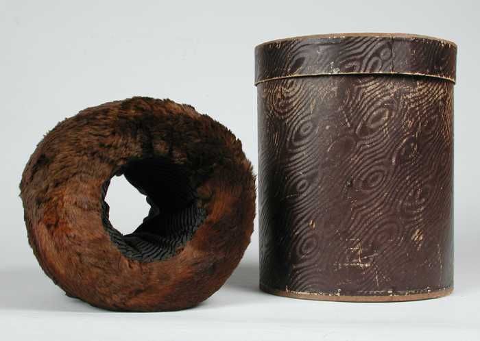 Kleine mof van kort zacht en fijn donkerbruin bont, ...