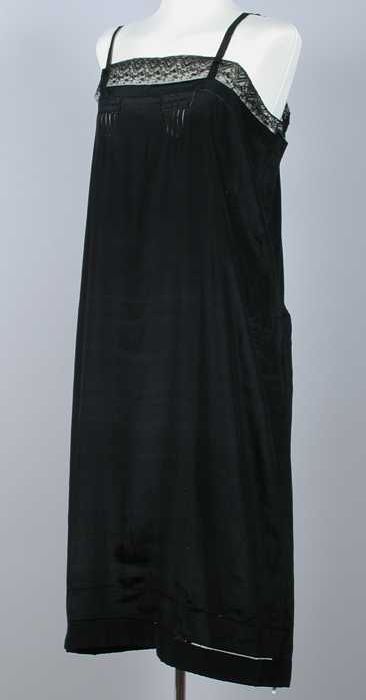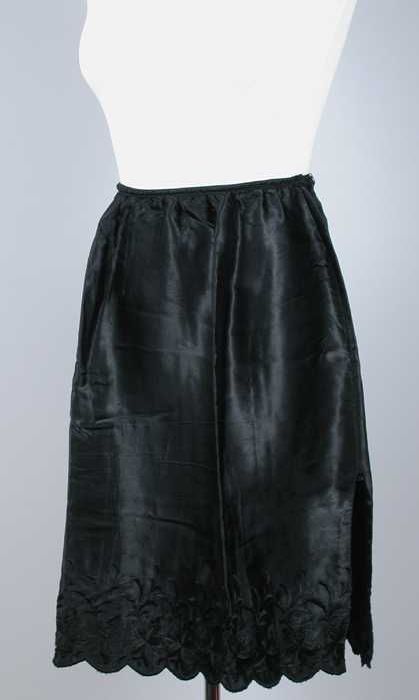 Grote onderjurk van dun zwart pongé zijde met openna...