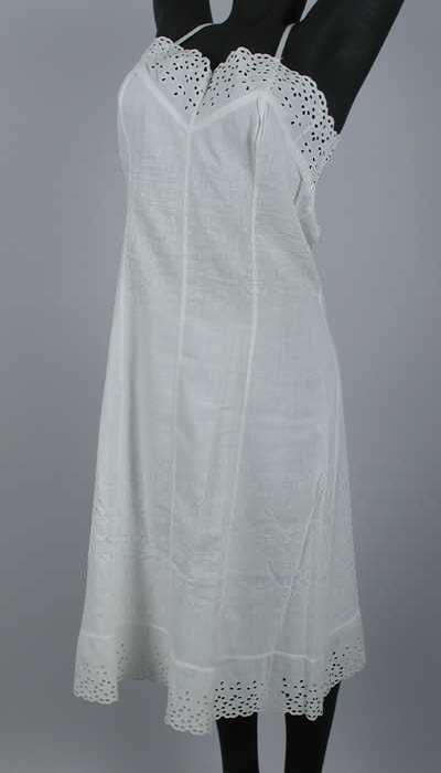 Knielange onderjurk van wit katoen met broderie lang...