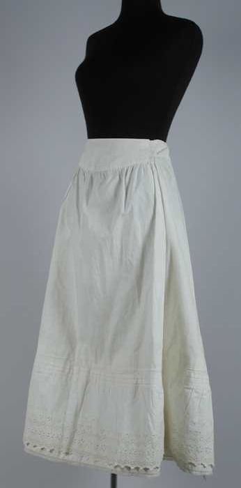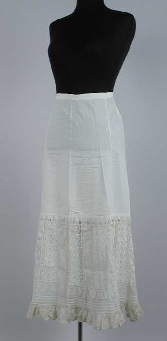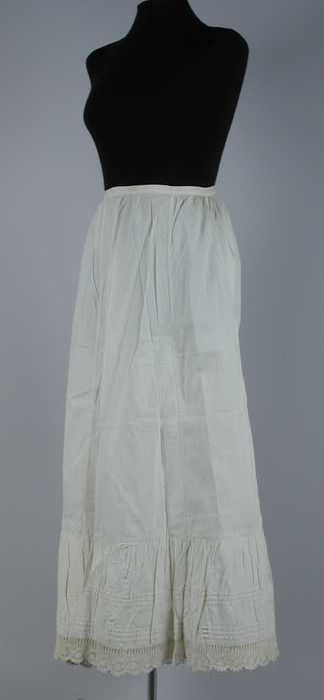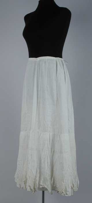 Lange onderrok van wit katoen met een brede strook m...